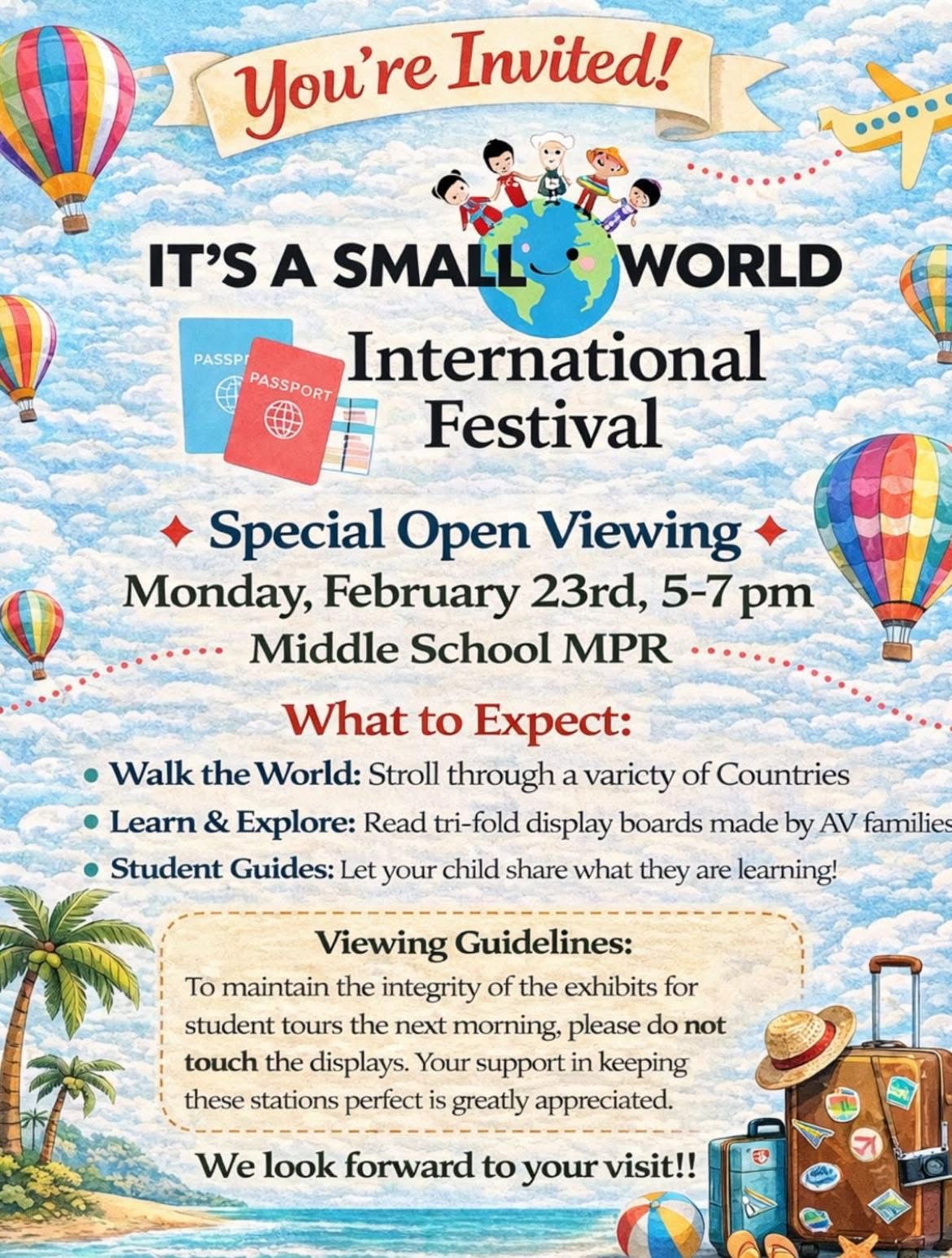 Our "It’s a Small World: International Festival" is just around the corner! Students will embark on a cultural journey filled with music, activities, and exciting global discoveries.